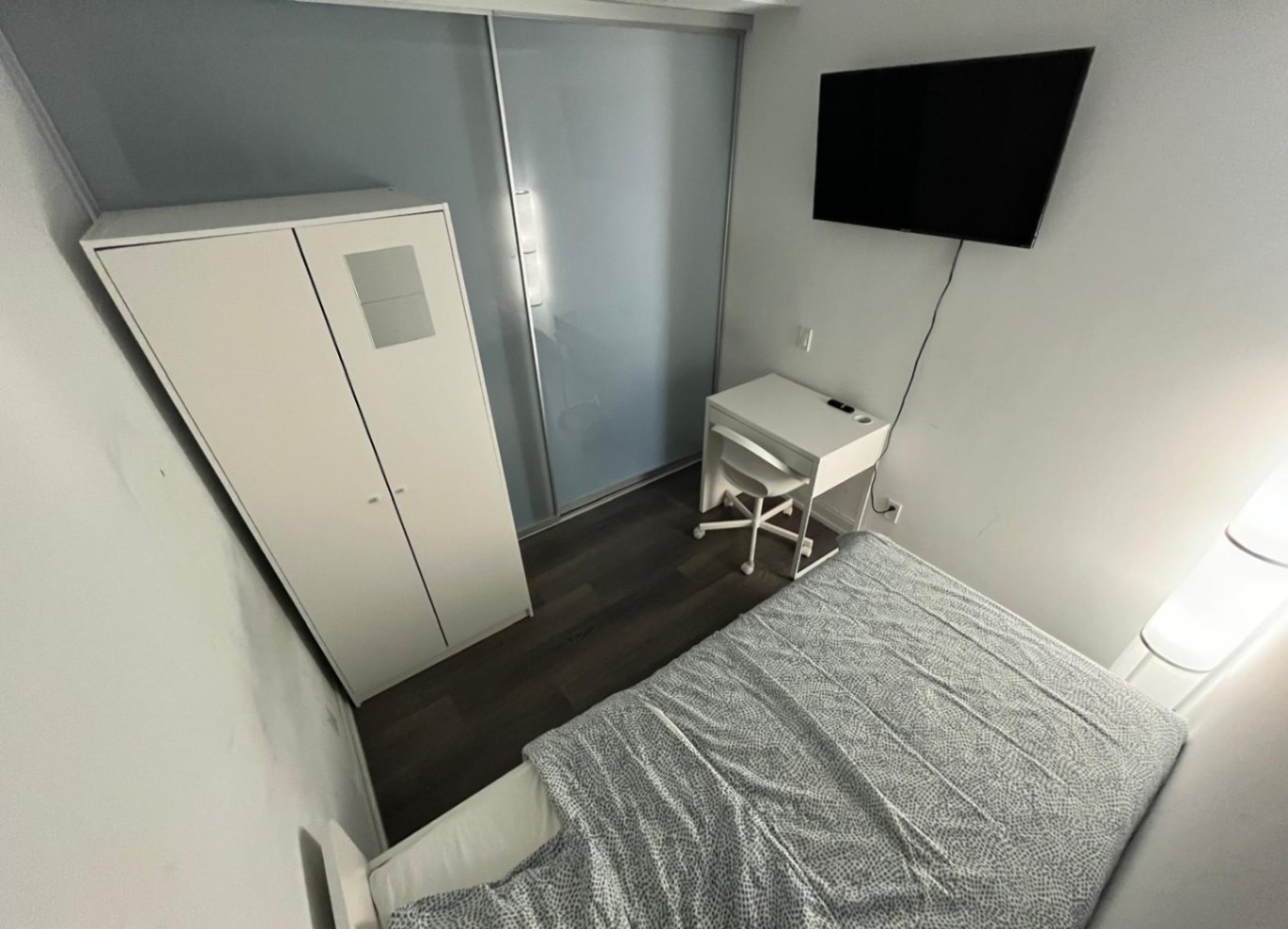The Flex Room is part of a larger three-bedroom apartment and comes with a shared bathroom. This room is well-lit with huge windows and offers premium furnishings like a single bed, a study desk with a chair, a smart TV for entertainment purposes and an ample amount of storage space. Residents of this room will also get access to a fully fitted shared kitchen at the property that comes equipped with essential appliances like a cooking hob, fridge, freezer, microwave, oven, electric kettle and sink. study.