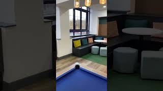 A communal lounge creates space for socializing.