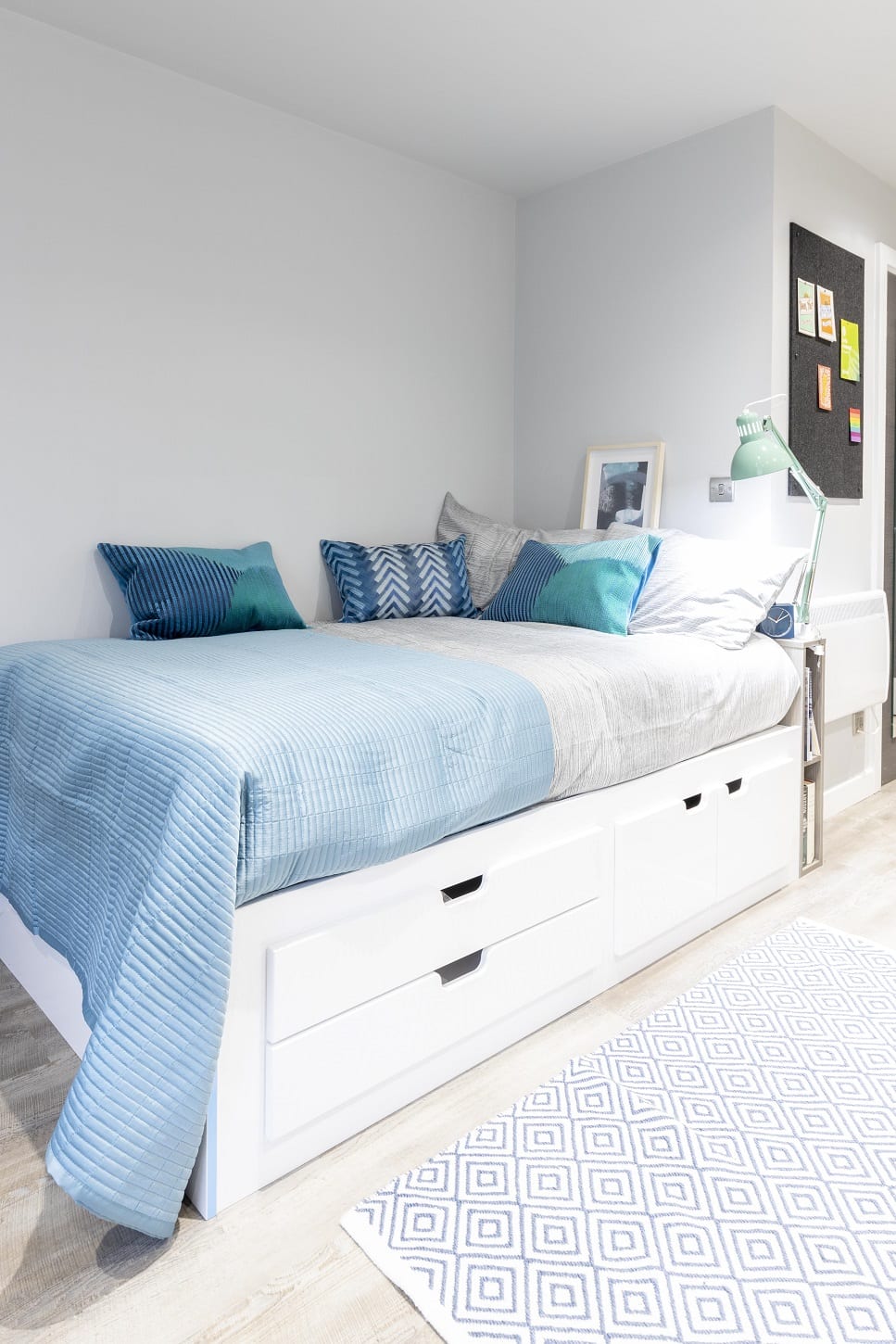 - Each studio is equipped with a small double bed, under-bed storage, a wardrobe, a study desk, a smart TV, and a fully fitted kitchen. Premier studios also feature a dishwasher.