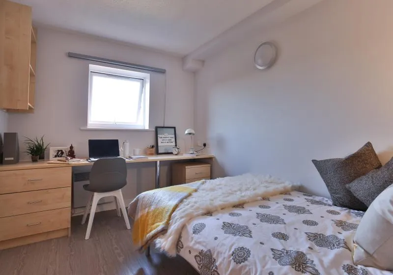 Students can choose from several modern en suite rooms depending on their budget and preference. Options include Bronze, Copper, Silver, Silver Plus, Gold, and Gold Plus En Suites, offering a private bathroom, study area, and comfortable bed.