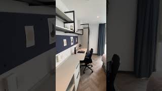 This stylish silver club ensuite room offers the ideal balance of privacy and community living. Furnished with a small double bed, a huge wardrobe, and a window for natural light, the room is designed to make you feel at home. It also includes a full-length mirror, shelves, and drawers for organizing your belongings. The study desk, chair, and lamp create a perfect space for studying. The private ensuite bathroom features a mirror, washbasin, toilet, and shower. Students will also enjoy the convenience of a shared kitchen, shared dining area, and shared living area, making it easy to cook and socialize with fellow residents.