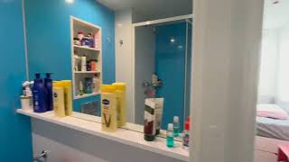These apartments are located on the 5th and 6th floors and are sharable between 3 to 7 people. Every private bedroom has a small double bed, a study area, study desk, chair, mirror, storage, wardrobe, sofa, and a ensuite bathroom with a shower. The shareable areas include a communal kitchen with a dishwasher, a dining area, and a living area with a large TV, and sofa seating.
