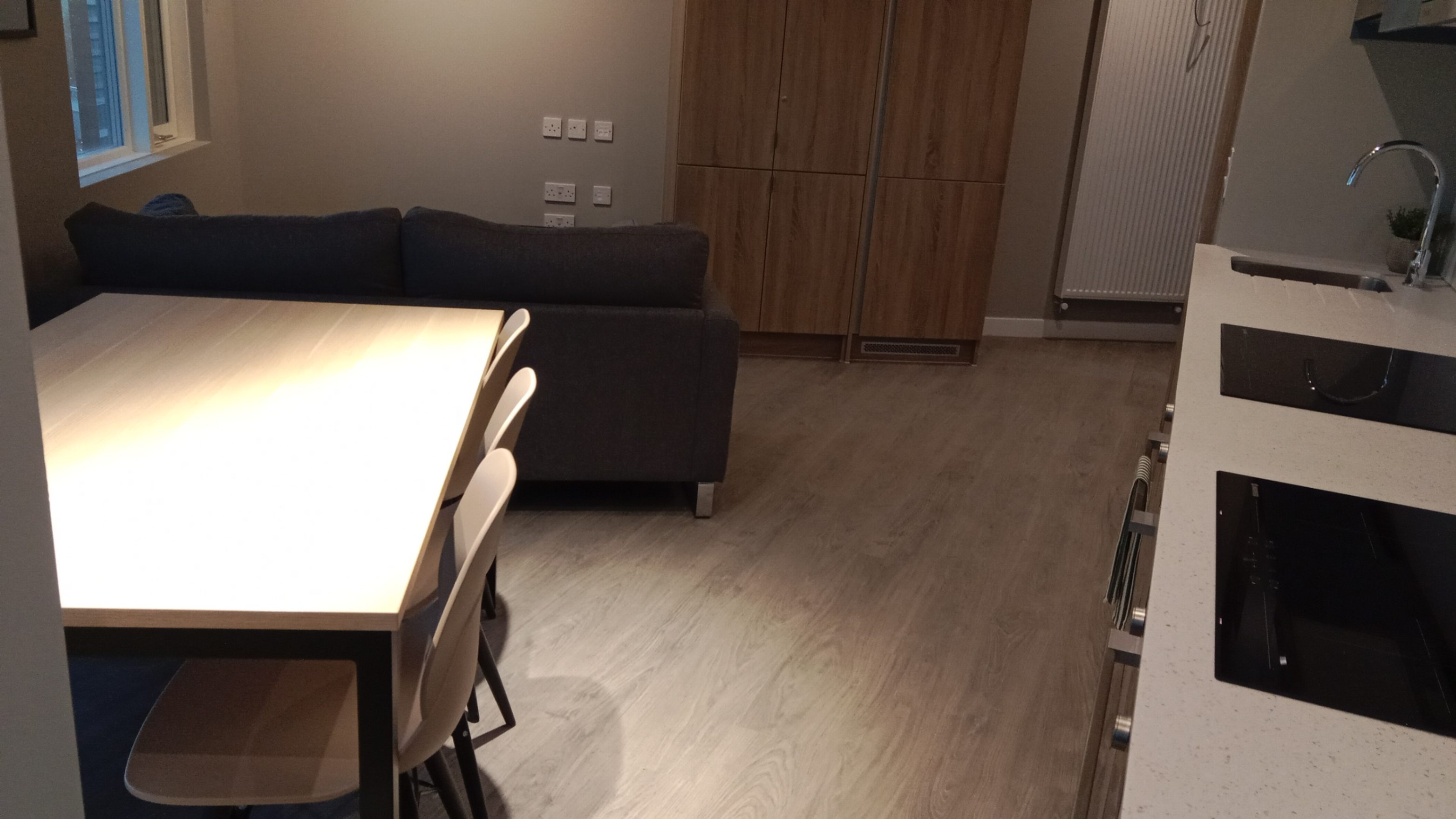 The Standard 6‑Bed En‑Suite offers a comfortably sized shared apartment, ideal for those wanting fewer housemates. Each private room includes a double bed, wardrobe, desk, chair, shelves, drawers, and an en‑suite bathroom with shower, toilet, washbasin, mirror, and towel holder. Generous windows provide natural light and fresh air. Shared communal spaces feature a fully-equipped kitchen, dining area, and inviting lounge, great for group dinners, study nights, or relaxed downtime. This smaller group dynamic fosters strong friendships and closer interaction, while maintaining personal space and privacy. It’s the perfect blend of community and convenience for students seeking a well-rounded living experience.