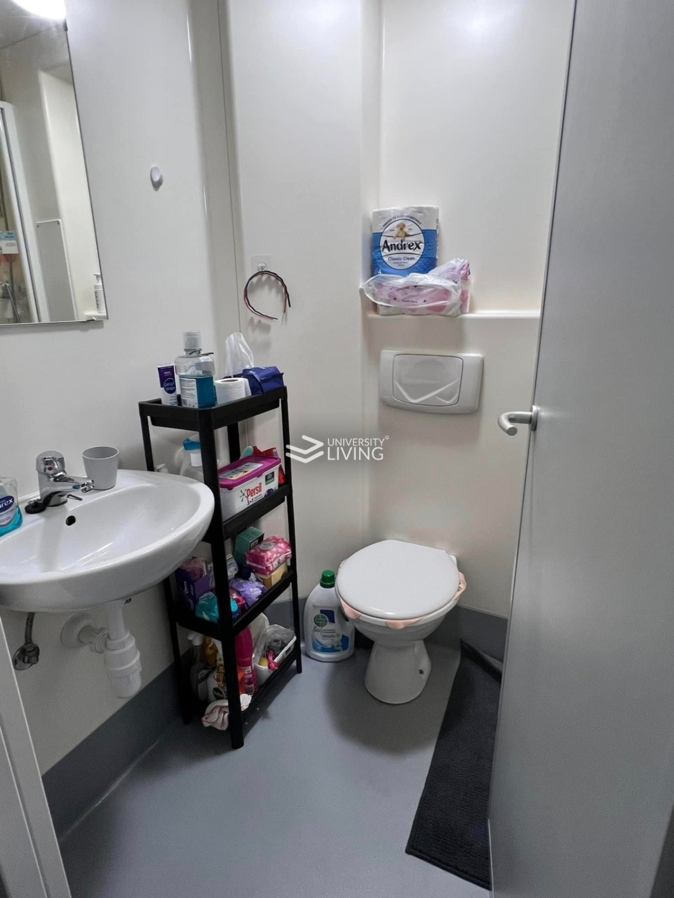 This generously proportioned room provides a completely private retreat, furnished with a comfortable double bed, a dedicated desk and desk chair for study/work, a wardrobe, under-bed storage, and a mirror. Your private ensuite bathroom includes a shower, toilet, washbasin, and towel rail for exclusive use.